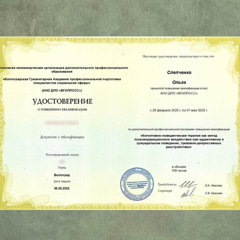 Работаю в методе когнитивно-поведенческой терапии (КПТ) - помогаю замечать мысли, понимать чувства и выстраивать новые способы реагирования. Этот подход помогает вернуть опору, ясность и уважение к себе.