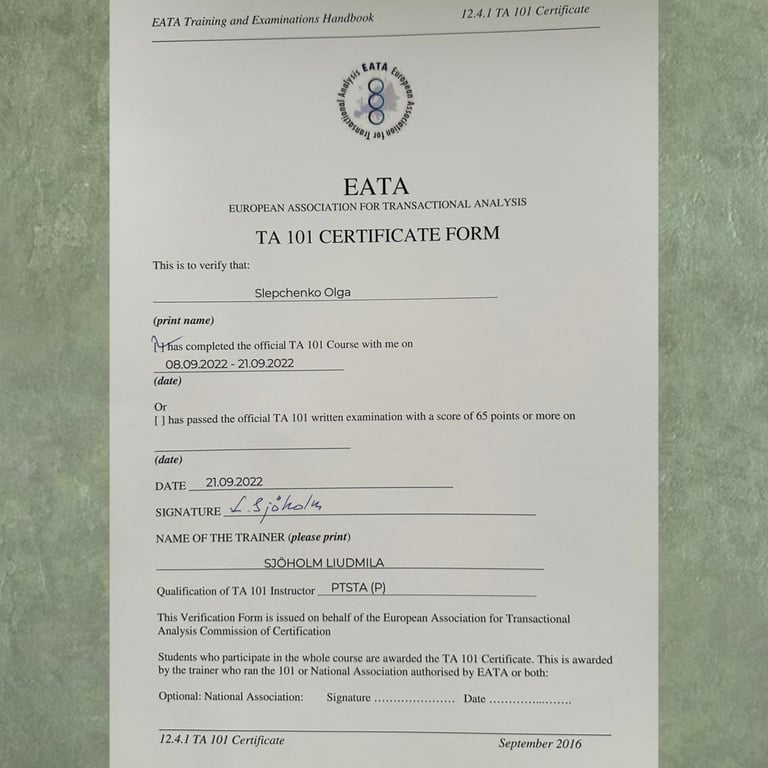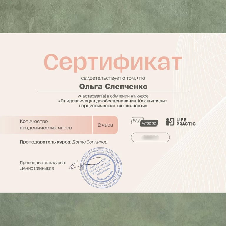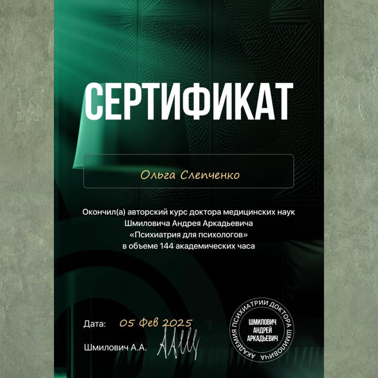 Член Ассоциации когнитивно-поведенческой терапии (КПТ).
